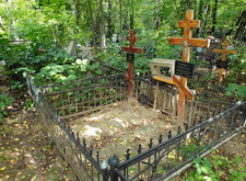 Клиент заказал у нас комплексное оформление места захоронения, в которое входят: классический горизонтальный памятник из чёрного гранита с прямоугольным цветником, простая металлическая оградка, а также наземное покрытие места захоронения гранитной брусчаткой. В первый наш приезд на кладбище могила выглядела следующим образом: два деревянных крестика и простое ограждение.