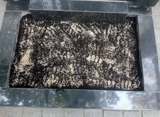 Наступил заключительный этап работы с местом захоронения. Мы замыли брусчатку и дождались, пока раствор окончательно схватится. Затем с помощью специальной жидкости мы восстановили надпись на памятнике, а рассыпанные в цветник семена засыпали мульчей. Так выглядит место захоронения после проведения всех работ по благоустройству.