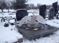 Очень сложная и интересная работа по созданию уникального мемориального комплекса. Он на столько уникальный и запоминающийся, что если на Троекуровском кладбище (богемное кладбище Москвы), где установлен этот комплекс, вы спросите у любого служащего где находится могила с лебедем, вам легко покажут дорогу.